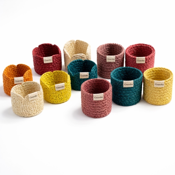 Set of 10 Colorful Jute Desk Organizers - Pen Stands/Holders